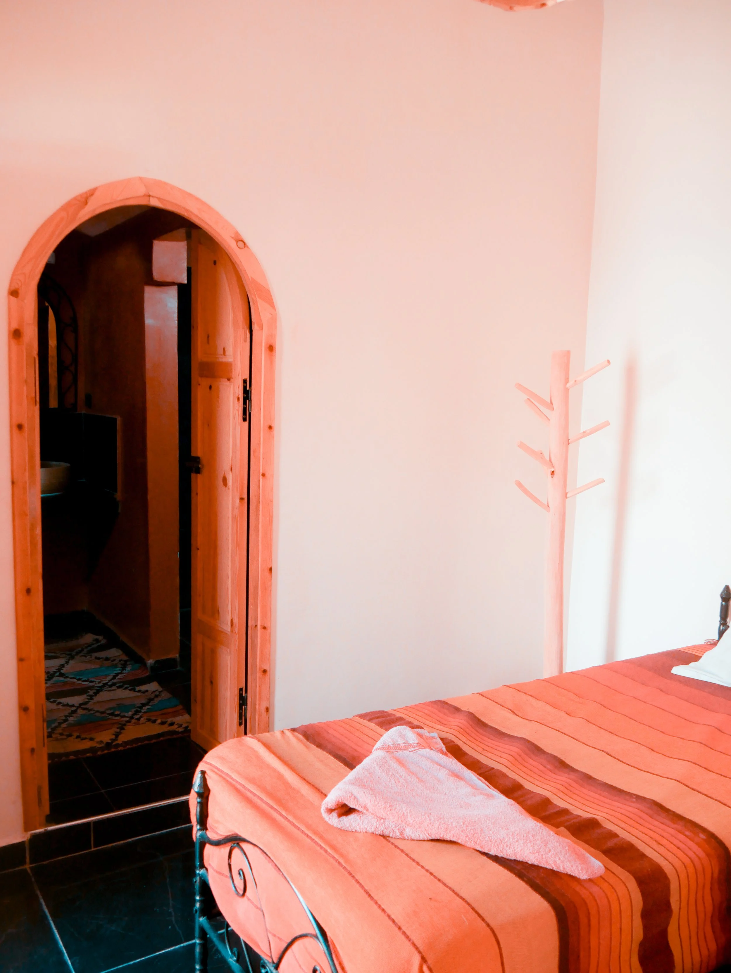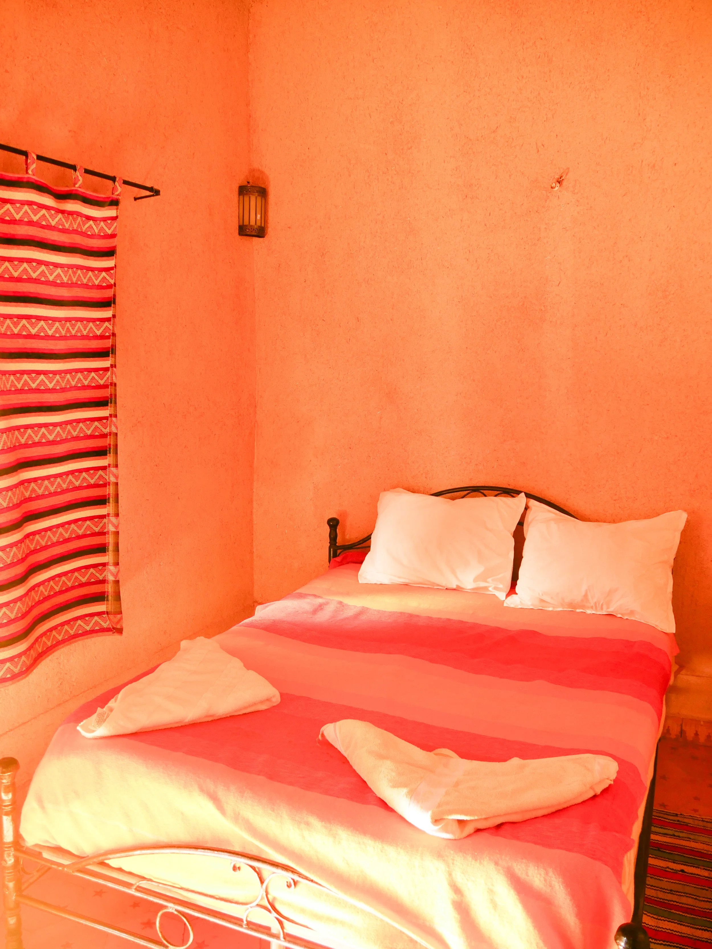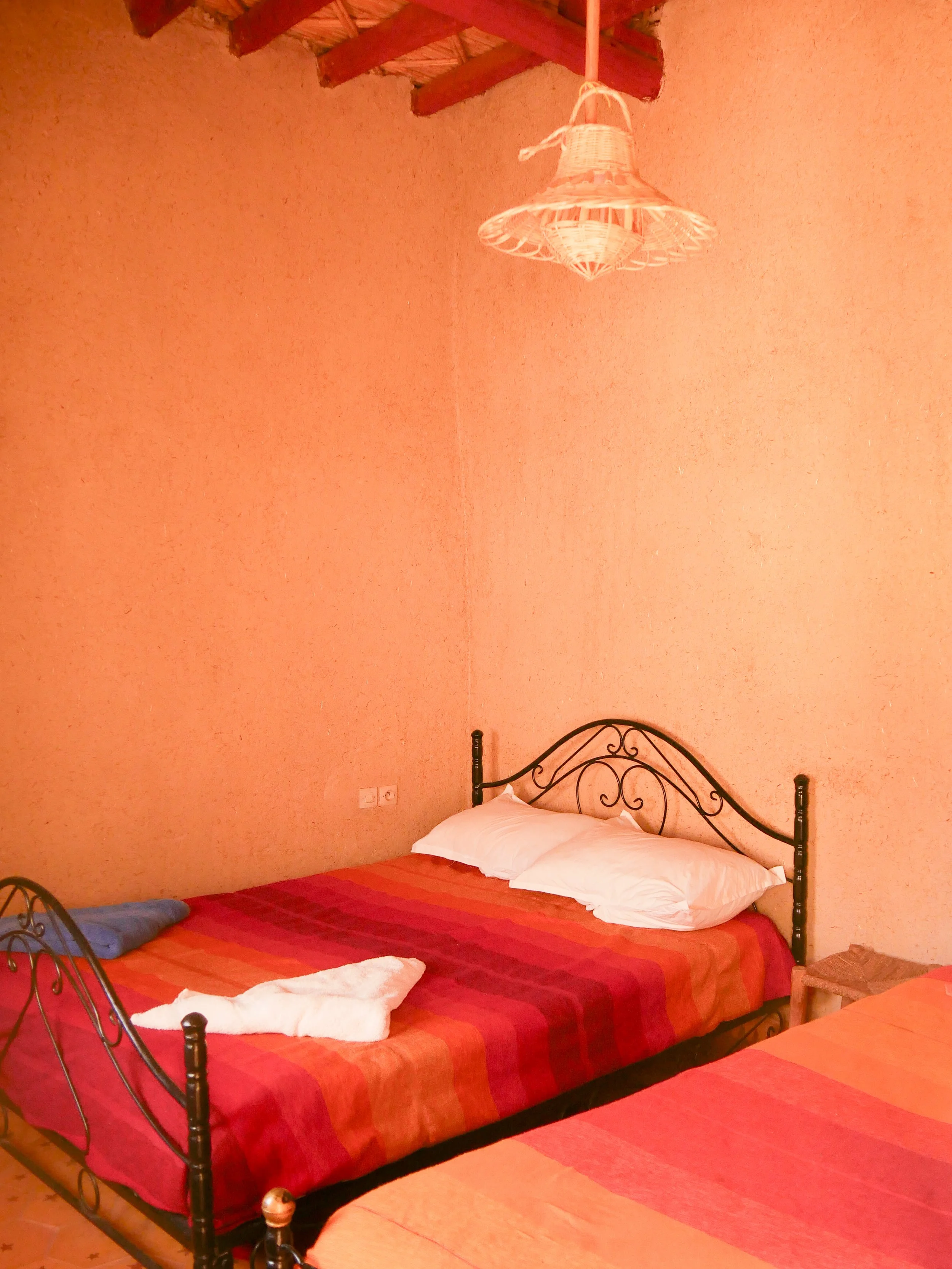 Les 9 chambres de l'auberge La Roche Noire sont conçues pour offrir un cadre simple, confortable et apaisant. Avec une décoration traditionnelle, chaque chambre vous invite à vous détendre et profiter du calme de l’Oasis de Fint.